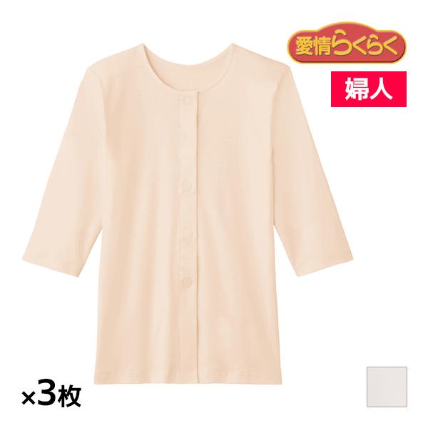 同色3枚セット 愛情らくらく らくらく肌着 7分袖ワンタッチインナー 綿100% 婦人 女性 グンゼ GUNZE