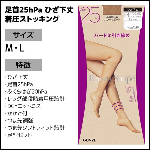 Beauty Shape 足首25hPa ひざ下丈 着圧ストッキング 高着圧 パンスト グンゼ GUNZE