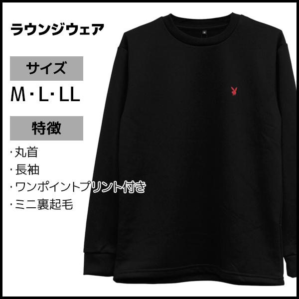 送料無料 PLAYBOY プレイボーイ ミニ裏起毛 長袖丸首Tシャツ ラウンジウェア アツギ ATSUGI レナウンインクス【1枚までメール便可】| ワンマイルウェア 部屋着 ジャージ スウェット トレーナー ロンt インナー ルームウェア ホームウェア パジャマ 上 のみ