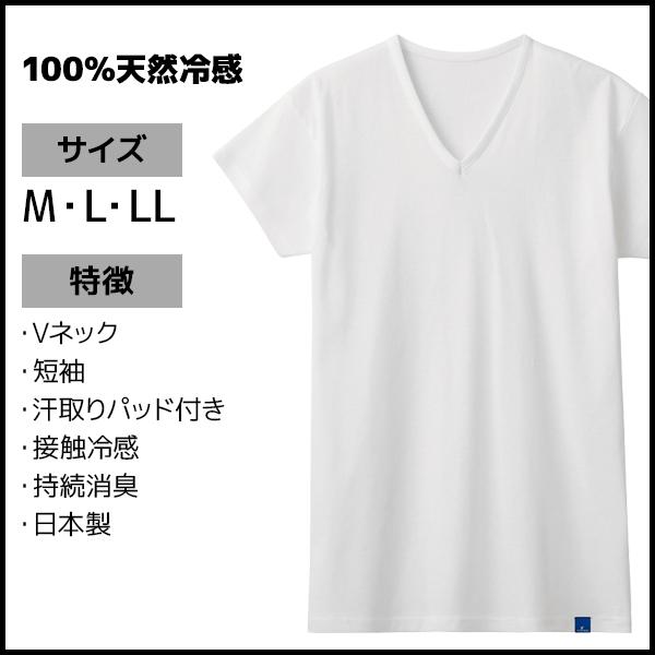送料無料 COOLMAGIC クールマジック 100%天然冷感 汗取り付きVネックTシャツ 短袖 綿100% 日本製 男性 グンゼ GUNZE 【2枚までメール便可】
