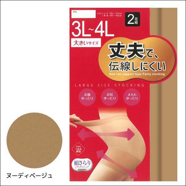【2組までメール便可】大きいサイズ 丈夫で伝線しにくい 2足組 3L-4Lサイズ パンスト ストッキング 関東ナイロン 【メール便送料無料】