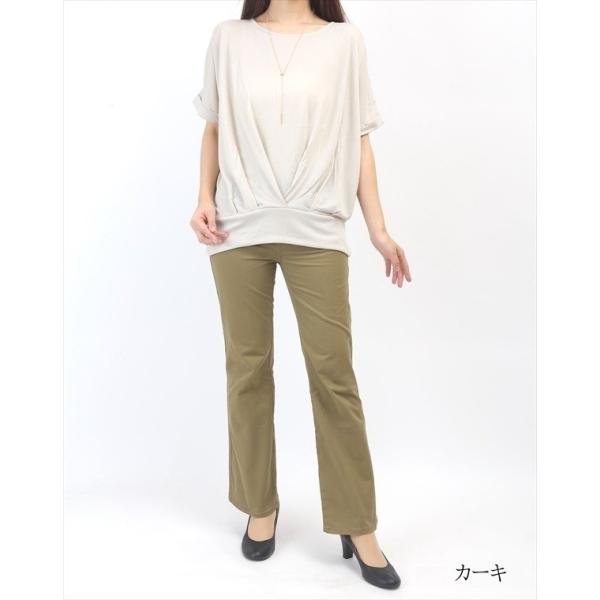 お腹が苦しくない大人の パンツ レディース 綿 春 ストレート 綿98% ストレッチ ゴム チノパン ストレッチパンツ チノパンツ ウエストゴム スラックス