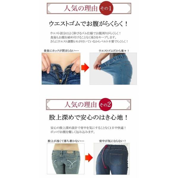 デニム パンツ レディース ウエストゴム スリム ジーンズ