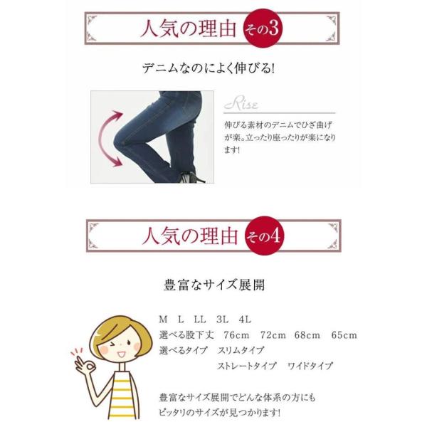 デニム レディース ウエストゴム ジーンズ ストレッチ デニムパンツ ジーパン ゆったり ストレート ハイウエスト 股上深め 選べる股下 大きいサイズ あり
