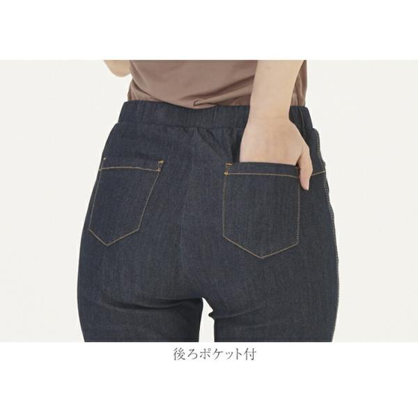 40代からの クロップドデニムパンツレディース お腹が楽な ジーパン デニム ジーンズ ズボン ウエストゴム らくらく デニム 股上深め ジーンズ 股上の深い