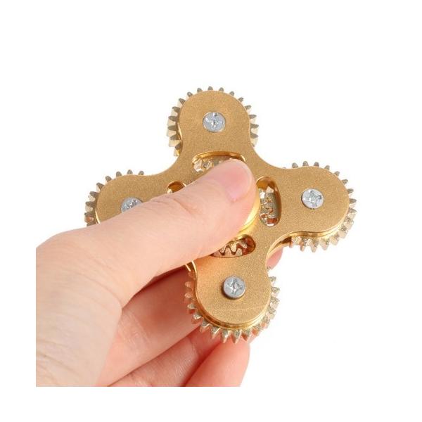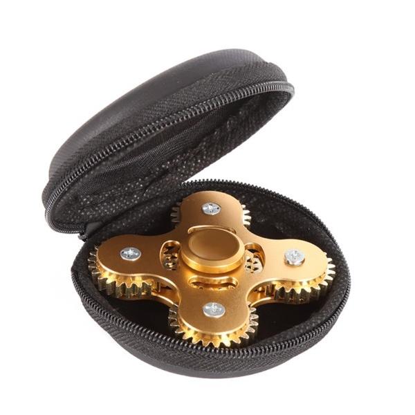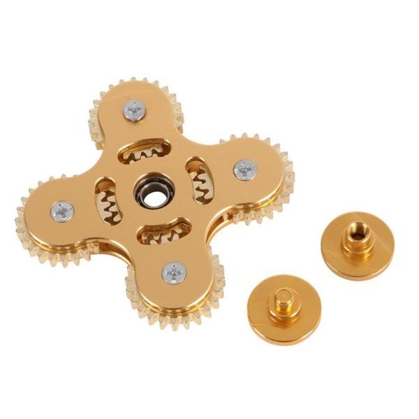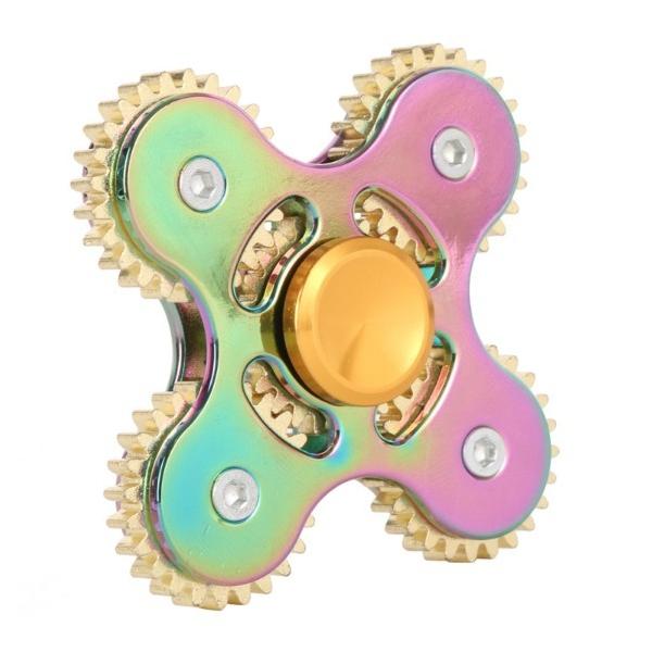 ハンドスピナー ギア 歯車 5ギア レインボー ゴールド 虹色 高品質 メタル 合金 金属製 4枚羽 高速回転 ブラックケース付き