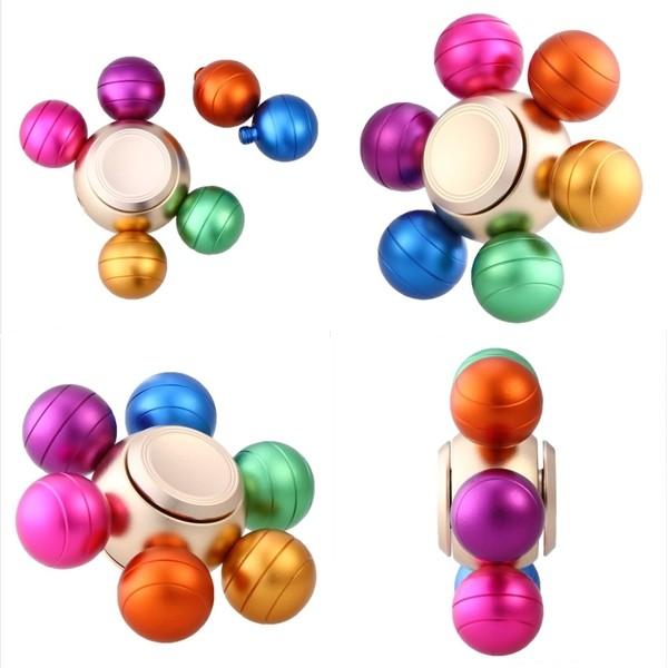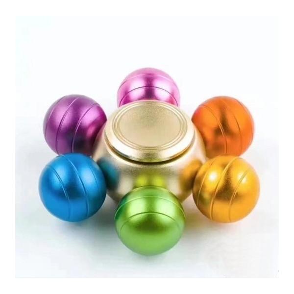 ハンドスピナー カラフル ボール レインボー 虹色玉 ゴールドパーツ ツヤ消し 高品質 メタル 合金 金属製 6枚羽 高速回転 かわいい 綺麗 シルバーケース付