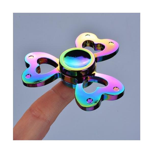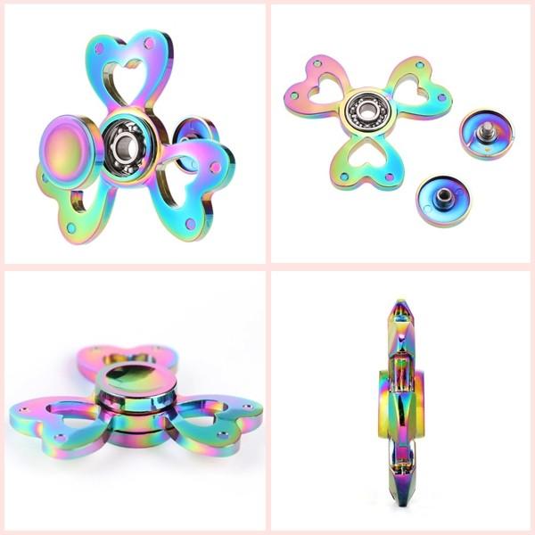 ハンドスピナー レインボー ハート 三つ葉クローバー 虹色 メタル 合金 金属製 3枚羽 かわいい 綺麗 女子 女性におすすめ シルバーケース付き
