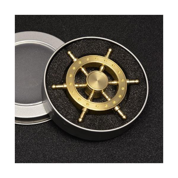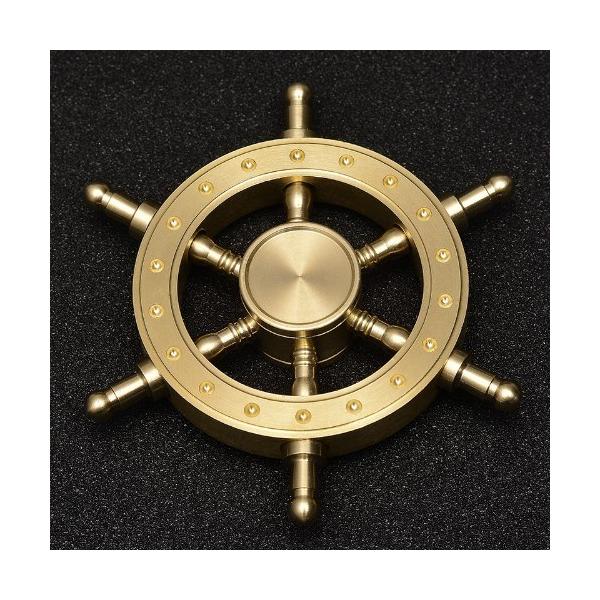 ハンドスピナー 舵 ラダー 舵輪 舵型 ゴールド 高品質 ドイツベアリング 真鍮 黄銅製 6枚羽 高速回転 ケース付き