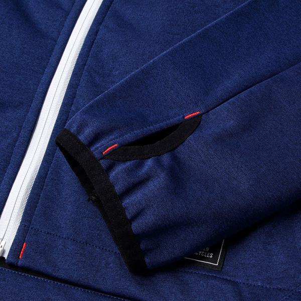 スラブ加工が施された防風素材のこのパーカーはストレッチ性に優れ、レイヤード時も運動性を妨げません。