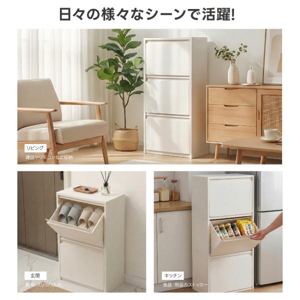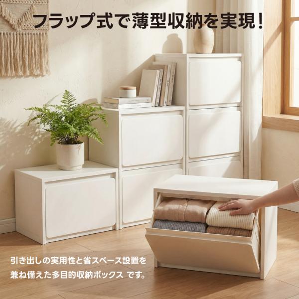 ボックス1段/2段/3段 引き出し スリム 収納ケース 前開き フラップ 分別 収納ボックス 組立簡単 ごみ箱 薄型 収納箱 壁面収納 衣装ケース 収納 衣類 en-nd10