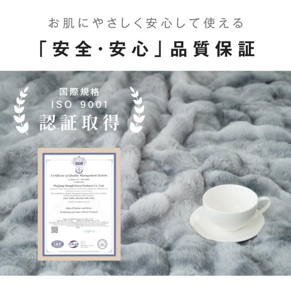 【抜け毛防止加工&安全安心】起毛繊維の防縮加工は製造工程を増やして、より緻密で抜け毛を防ぐ強度を実現し、浮遊毛の残留も極少なく、生地のボリューム感や肌当たり感、保温性まで向上させています。