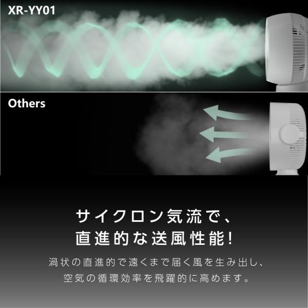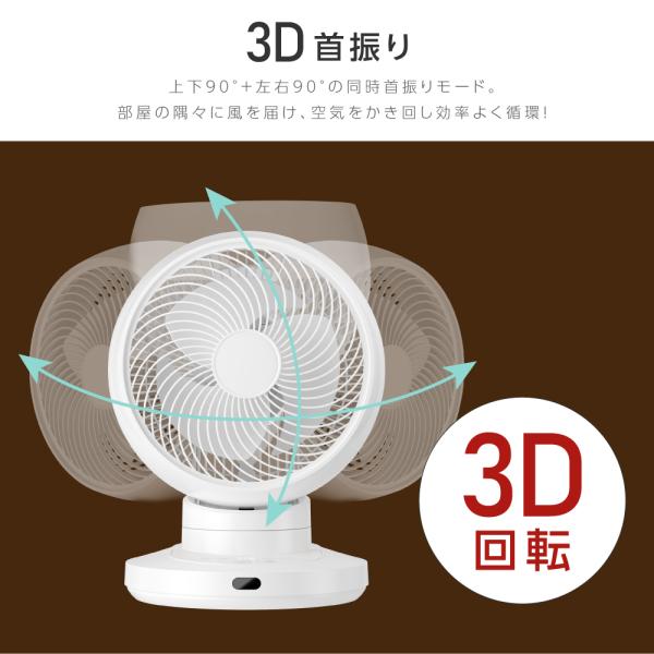 【3D首振り】上下90°+左右90°の同時首振りモード。部屋の隅々に風を届け、最大風速約5.5m/Sのパワフルな風を送ることで、お部屋の空気をかき回し効率よく循環!