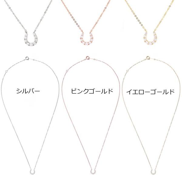 幸運をもたらすといわれる、馬蹄モチーフのネックレス。キュービックジルコニアが華やかにきらめく、可憐なデザインです。