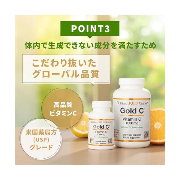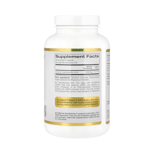 California Gold Nutrition, Gold C?(ゴールドC)、ビタミンC、USP Grade、1,000mg、ベジカプセル240粒