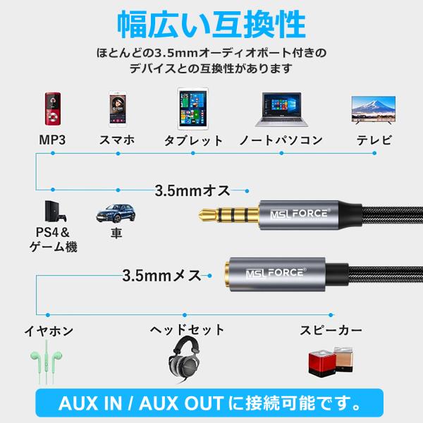 【2個目半額/最大600円OFF限定クーポン】イヤホン 延長コード 3.5mm 4極 0.5M/1M/2M オーディオケーブル マイク付きイヤホン Hi-Fi音質 AUX aux-m2f 送料無料