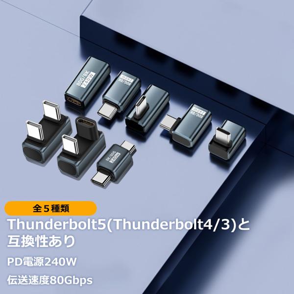 【750円から〜 2個目半額/3個目タダ】Type-C アダプター 80Gbps PD240W 急速充電対応 8K60Hz L字 オスーメス Thunderbolt5互換性あり TB5 送料無料