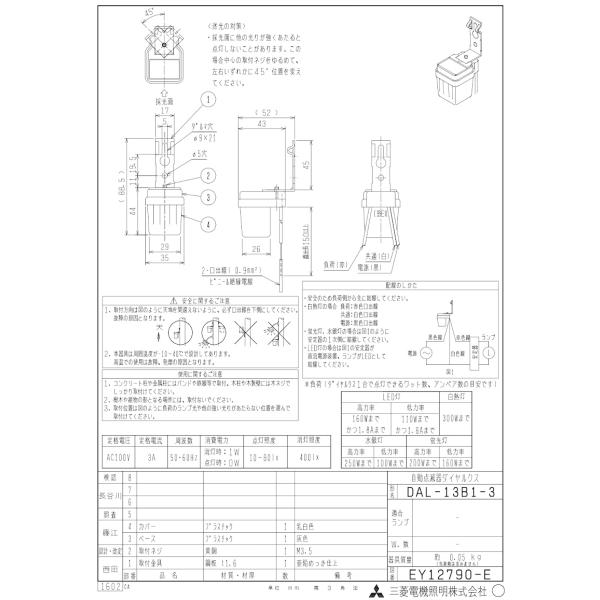 (送料無料) 三菱電機 DAL-13B1-3 自動点滅器 ダイヤルクス 屋外用リード線式 AC100V 3A 『DAL13B13』