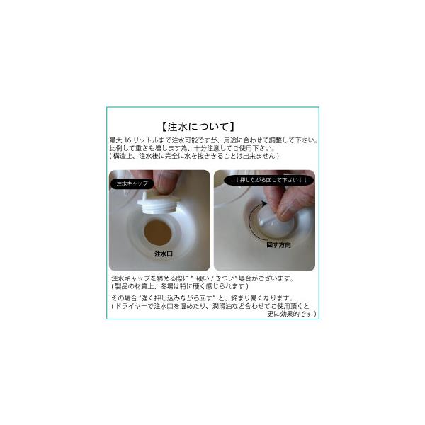 重さ:注入時約17kg/空1kg(最大16L注水可能です)