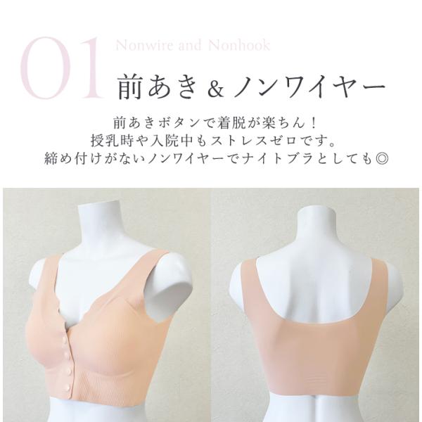 ナイトブラ ノンワイヤー フロントホック リブ 前開き 授乳 妊婦 産後 産前 介護 入院 ブラジャー 単品 バストケア リラックスブラ 痛くない おやすみブラ バストキープ バストアップ 脇肉 ブラ 下着 ベージュ ブラック カーキ オフホワイト