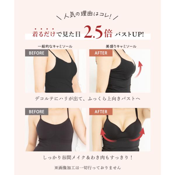 ワイヤーとカップが付いているのでブラいらず。ふっくらパッドでバストを持ち上げる優秀キャミソール。