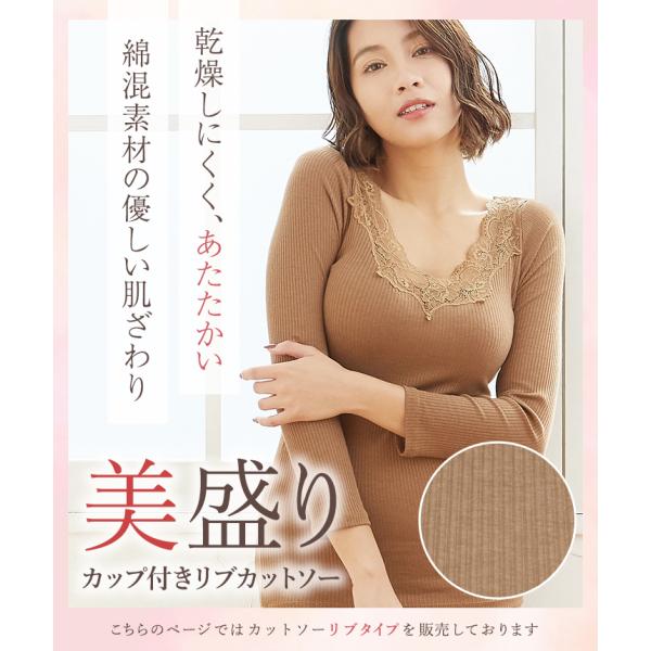 ブラトップ 長袖 カップ付き ヒートテック レディース ヒートテック 春 秋 冬 長袖カットソー リブ素材 極盛り 美盛り ワイヤー入り 爆買