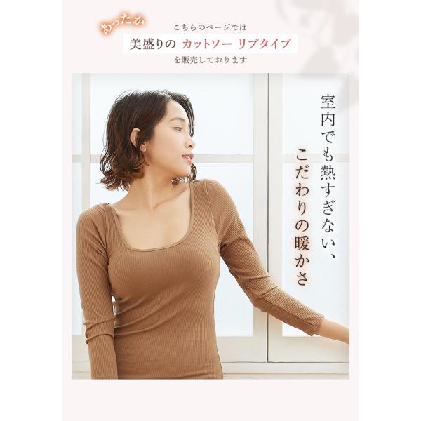 美盛りシリーズ ヒート カットソー カップ付き ブラトップ Uネック 着圧 秋 冬 あったか 長袖 カップ付きインナー mude
