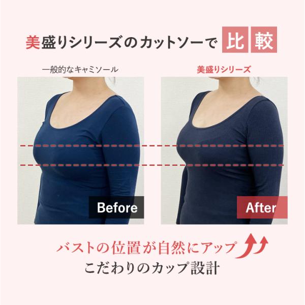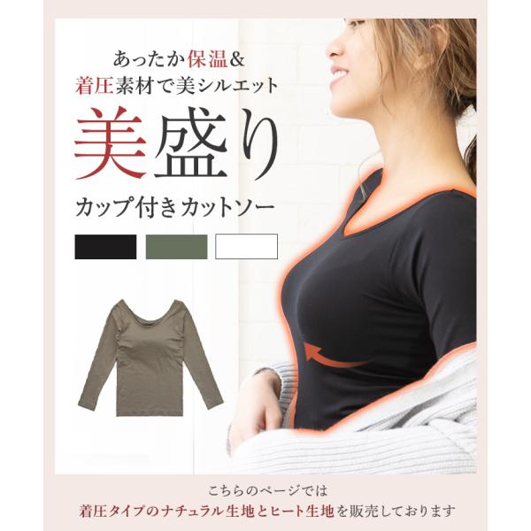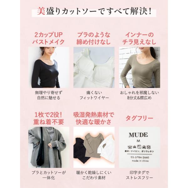 美盛りシリーズ ヒート カットソー カップ付き ブラトップ Uネック 着圧 秋 冬 あったか 長袖 カップ付きインナー mude