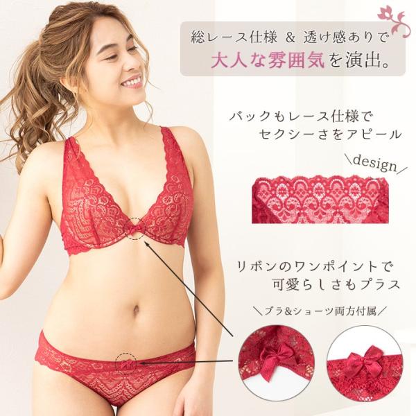 総レース ブラジャー ショーツ セット 大人 セクシー 透け感 ワイヤー入り 4段ホック 女性 可愛い シンプル 爆買 mude