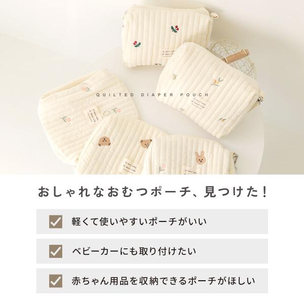 おむつポーチ おしりふき ポーチ キルト オムツポーチ くま 大容量 ベビーカー 装着 旅行 軽量 バッグ 可愛い コンパクト トラベルポーチ