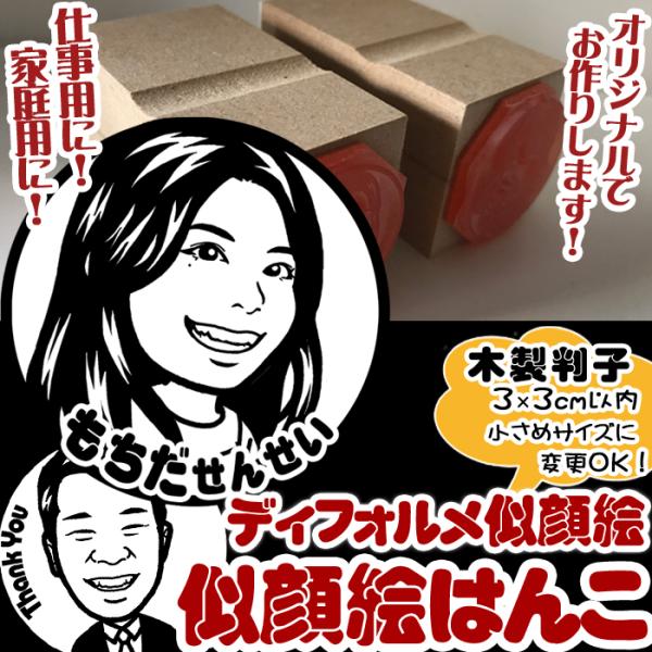 オリジナル似顔絵はんこ★ディフォルメ似顔絵 木製判子ゴム印★記念グッズ★名刺ビジネス用 年賀状カード家庭用★プレゼントにもご利用OK