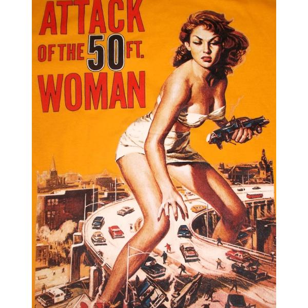 1958年、ネイザン・ハーツ監督による、B級ムーヴィー「ATTACK OF THE 50FT WOMAN MENS TEE」のTシャツです。