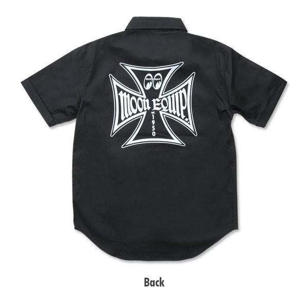 ムーンアイズ ワークシャツ 黒 MOONEYES 正規品 MOON Equipped Iron Cross 半袖シャツ