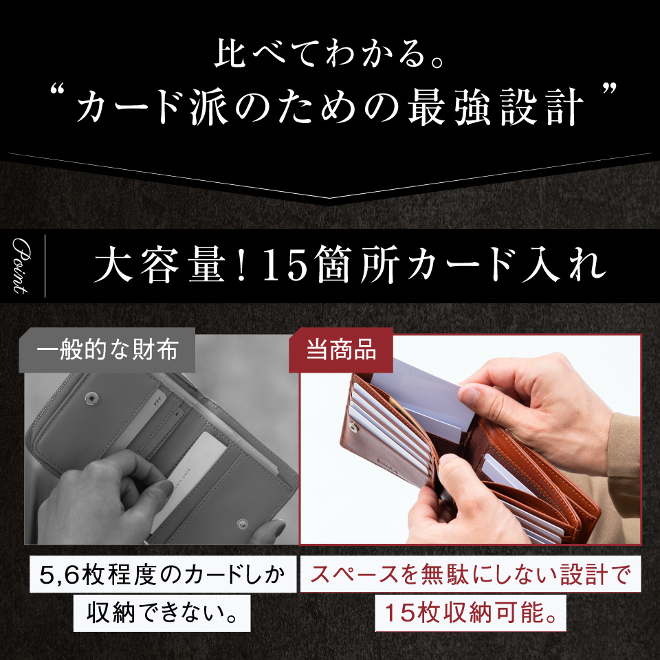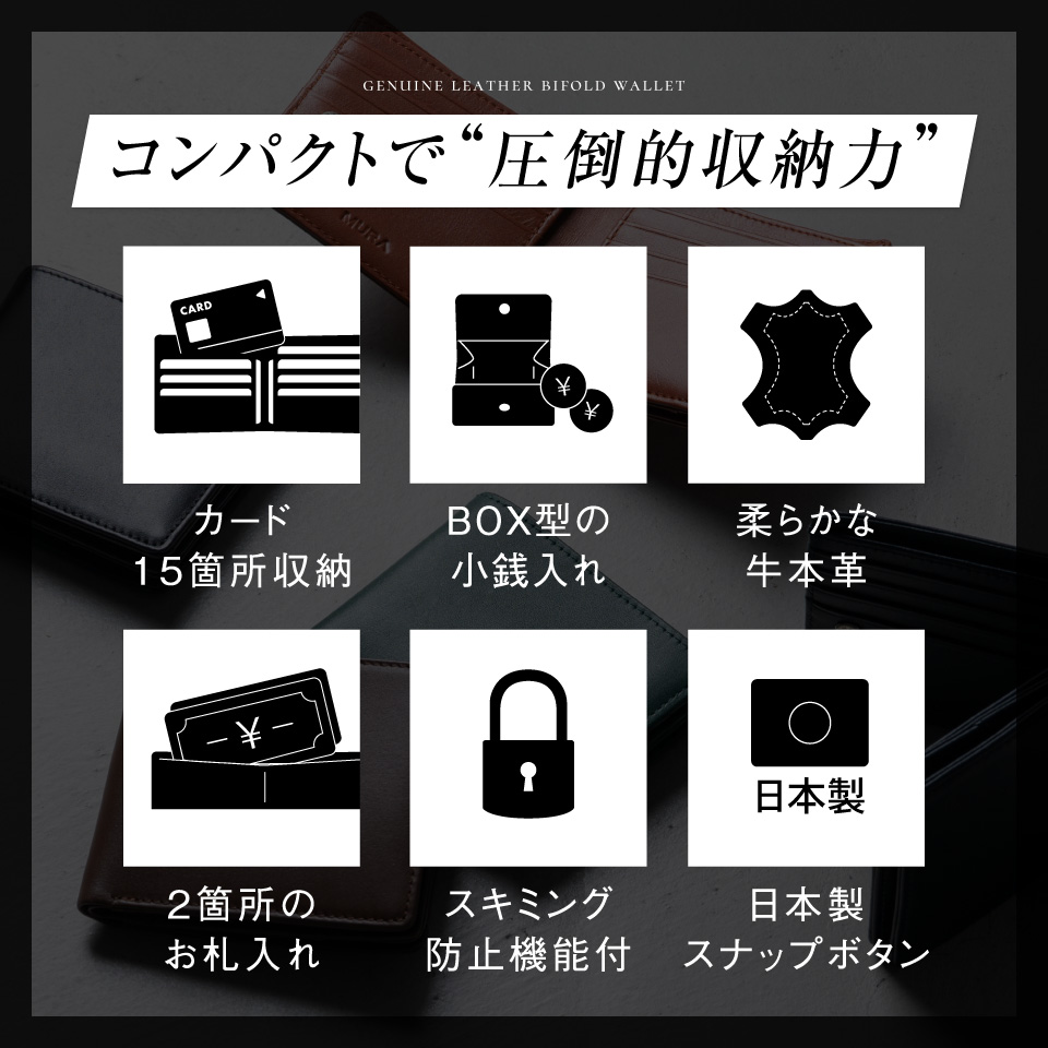 商品名 【カードも現金もまとめて入る大容量本革財布】 牛本革 二つ折り財布 メンズ