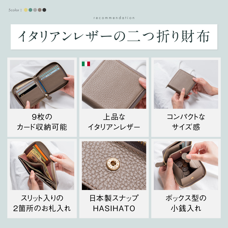 毎日持ち歩くお財布だから、コンパクトなサイズ感がちょうどいい。革はイタリア製の上品なアドリアレザーを使用しました。