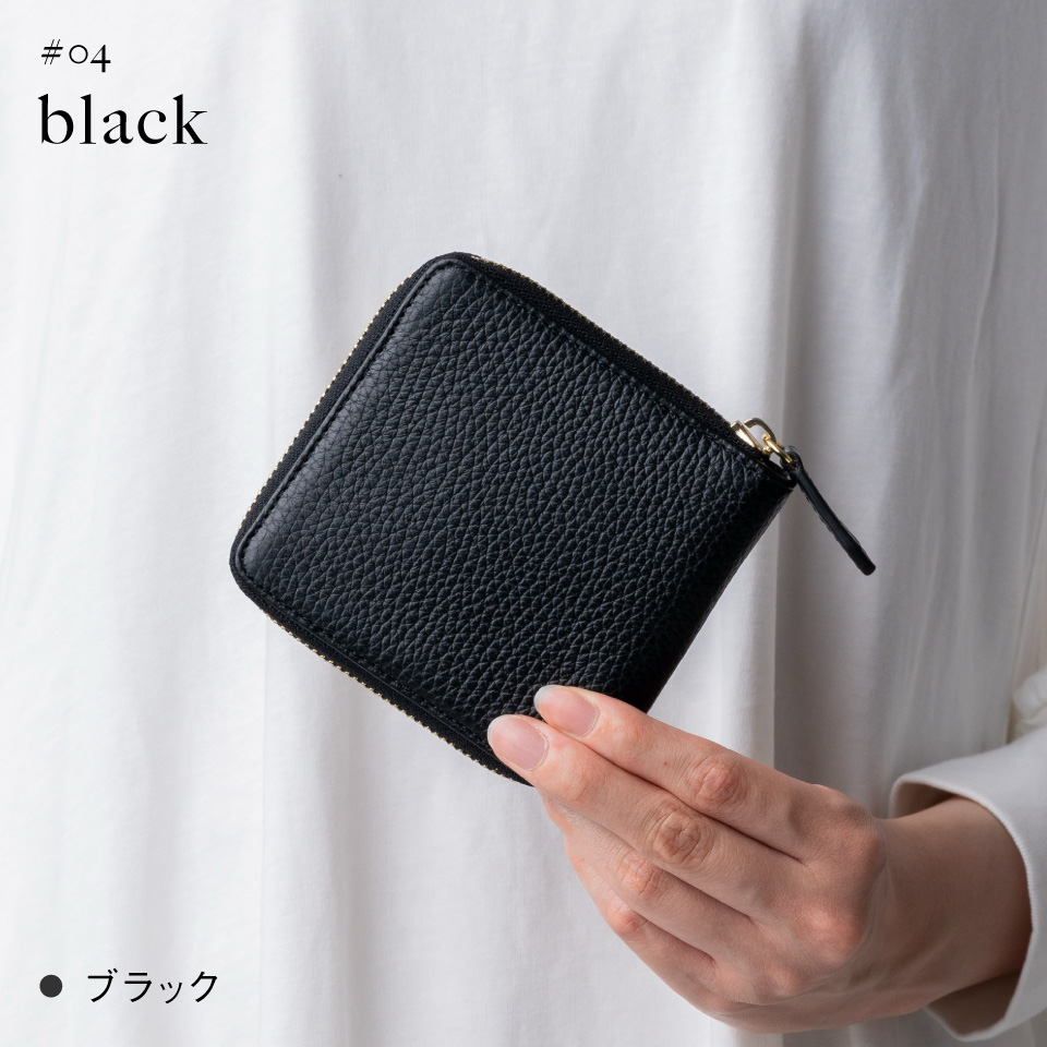 MURA イタリアンレザー スキミング防止 ボックス型小銭入れ コンパクト ラウンドファスナー 二つ折り財布