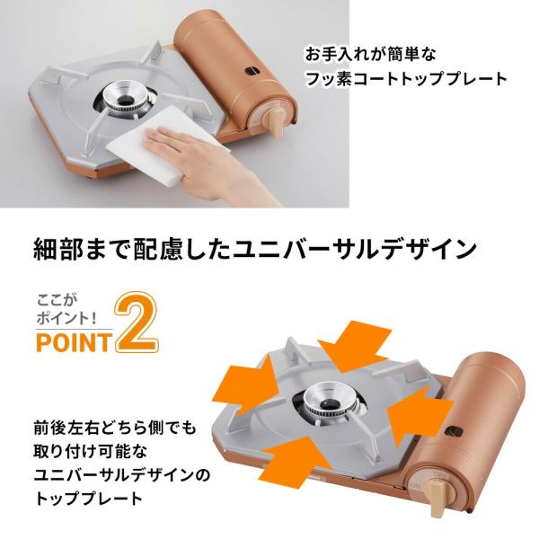 スタイリッシュなカセットコンロ。ムダ火を抑える効率設計!