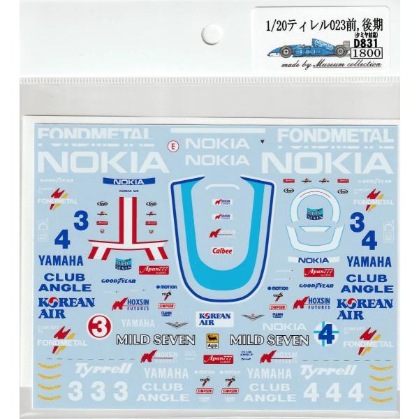 1/20ティレル023前,後期デカールです。デカールのみです。