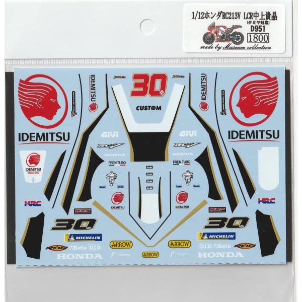 タミヤ対応。1/12ホンダRC213V LCR中上貴晶デカールです。デカールのみです。19モデルはアッパーカウルの形状が若干異なりますのでモデラ―ズアイを参照に改造して下さい。