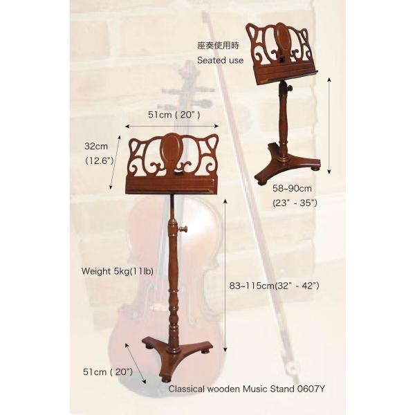 クラシカル木製譜面台 立奏、座奏兼用 Model 0607Y