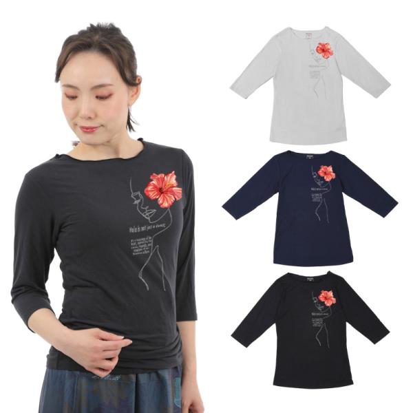 \ネコポス 送料無料/ フラダンス おしゃれ 人気 レッスン おすすめ ぴったり トップス 7分袖 Tシャツ ハイビスカスガール柄