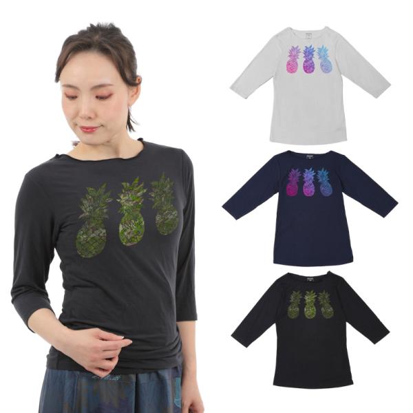 \ネコポス 送料無料/ フラダンス おしゃれ 人気 レッスン おすすめ ぴったり トップス 7分袖 Tシャツ パイナップルアイズ柄