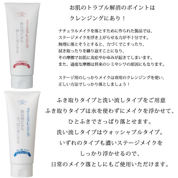 濃いステージメイクもしっかり落とせるクレンジング!ふき取りタイプと洗い流しタイプの2種類ご用意しています。