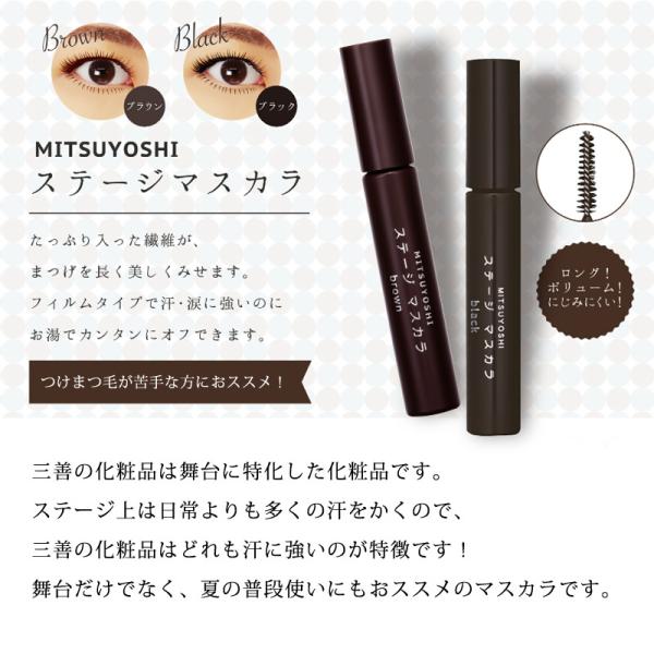ステージマスカラ 三善 舞台用 化粧品 ブラック ブラウン フラ タヒチアン バレエ フラメンコ 演劇