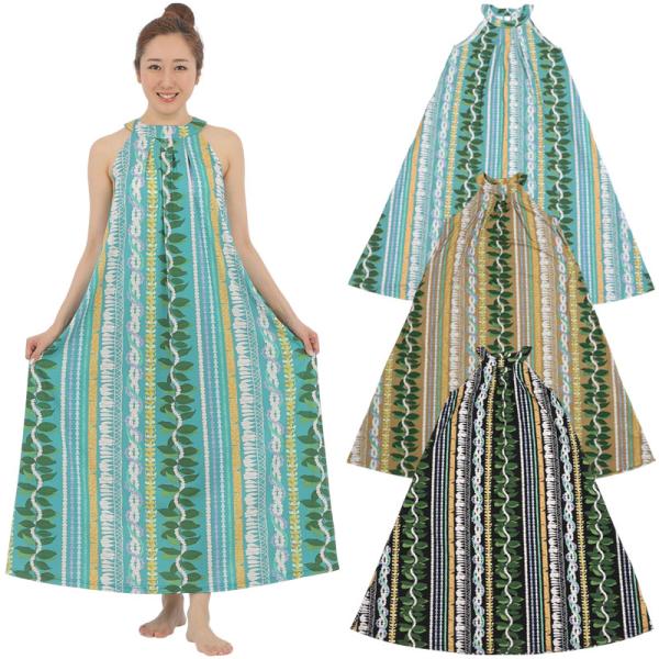 フラダンス 舞台衣装 ラウンドネック ロングドレス ポケット付き レイスタンド柄 フリーサイズ