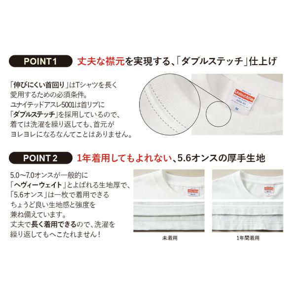 Tシャツ レディース 半袖 キッズ 無地 綿100% 厚手 透けにくい よれない 子供服 5.6オンス ユナイテッドアスレ 5001-01 運動会 発表会 事務服 介護