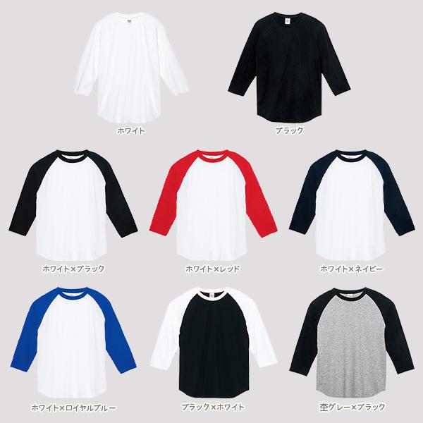 プリントスターの「00107-CRB」は、配色デザインがアクセントになるベースボールTシャツです。5.6オンスの程よい厚みがあるため、一枚で着ても透けにくく、季節の変わり目に重宝する7分袖仕様。肩のラインが動かしやすいラグランスリーブを採用しており、ファッション性だけでなく動きやすさも追求した人気アイテムです。