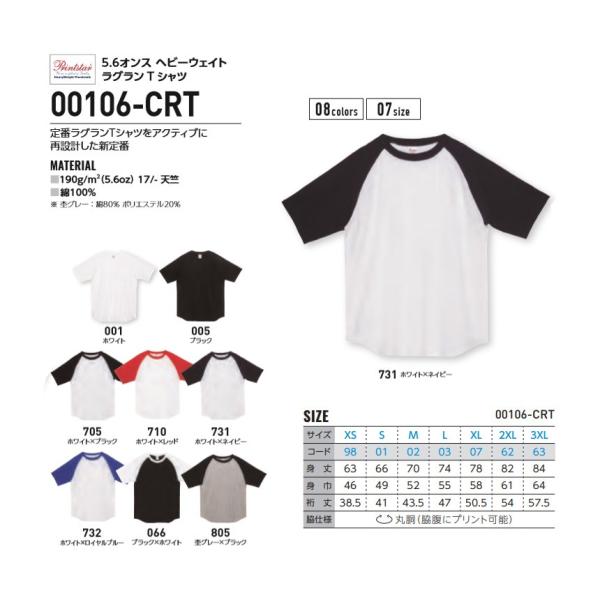 無地 半袖 tシャツ メンズ レディース Printstar プリントスター 5.6オンス ヘビーウエイト ラグラン Tシャツ スポーツ ユニフォーム 00106-CRT 通販M15