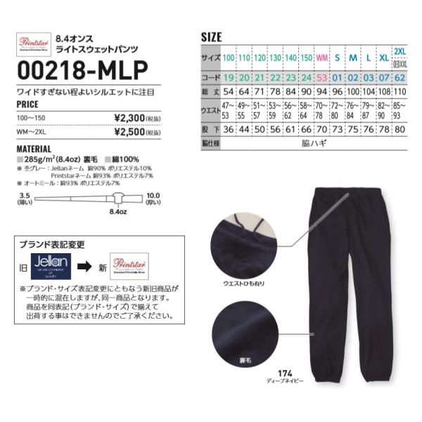 スウェットパンツ メンズ レディース 無地 Printstar プリントスター 8.4オンス ライトスウェットパンツ ユニフォーム 00218-MLP 通販A3