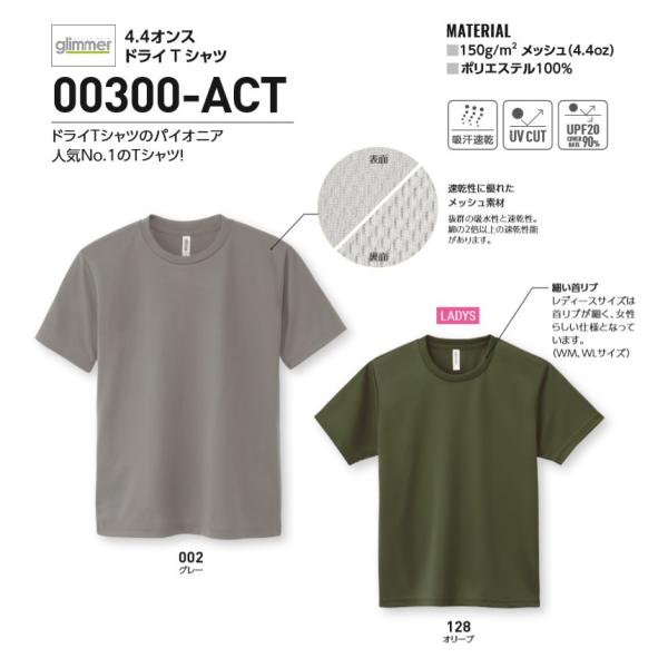 tシャツ メンズ ドライ グリマー glimmer 4.4オンス 無地 半袖Tシャツ 吸汗 速乾 スポーツ イベント 運動会 ユニフォーム 00300-ACT 通販A1